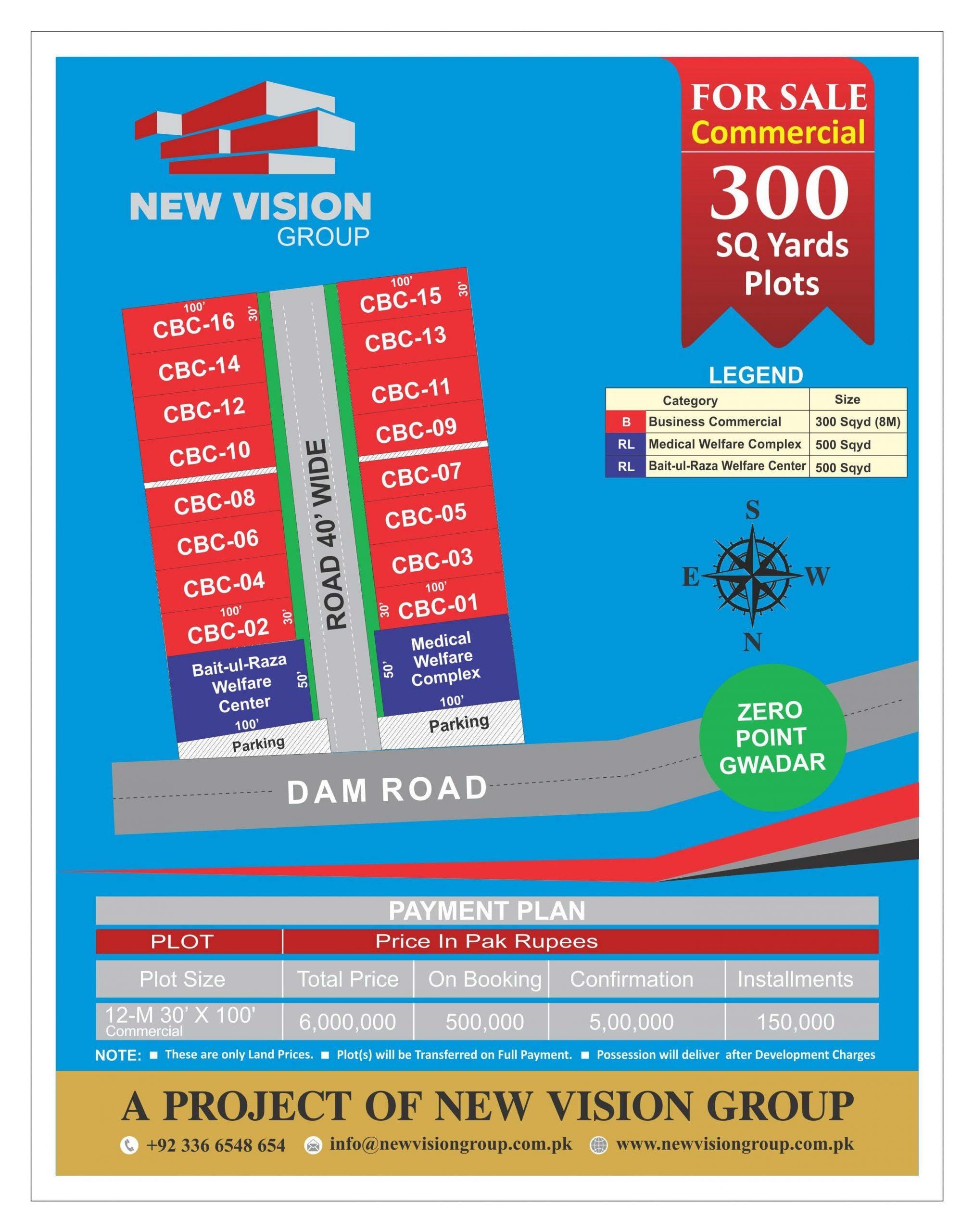 Coastal Business Center is under developing of New Vision Constructions fellow organization of New Vision Group, It is Commercial Land project Located on Dam Road, Main Coastal Highway which full fill the need for all type of investors and business Community. New Vision Group is managing all the activities of CBC Commercial as an autonomous Board of team members. Gwadar Property has an amazing response from investors all the world’s. That’s the reason CBC Commercial is a best choice for commercial land to make Investment for Future. Currently Rates are very affordable if availability of plots for regular booking.